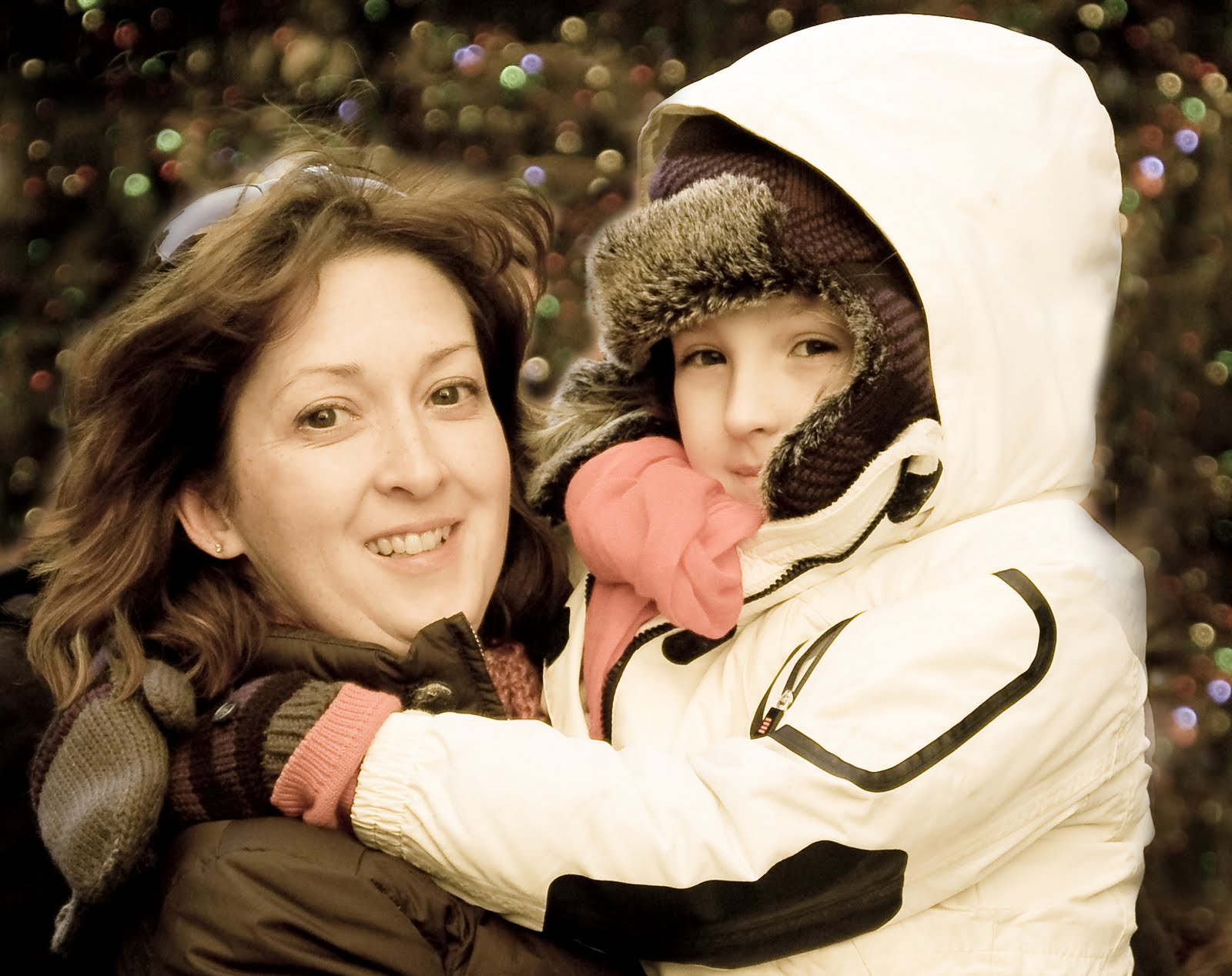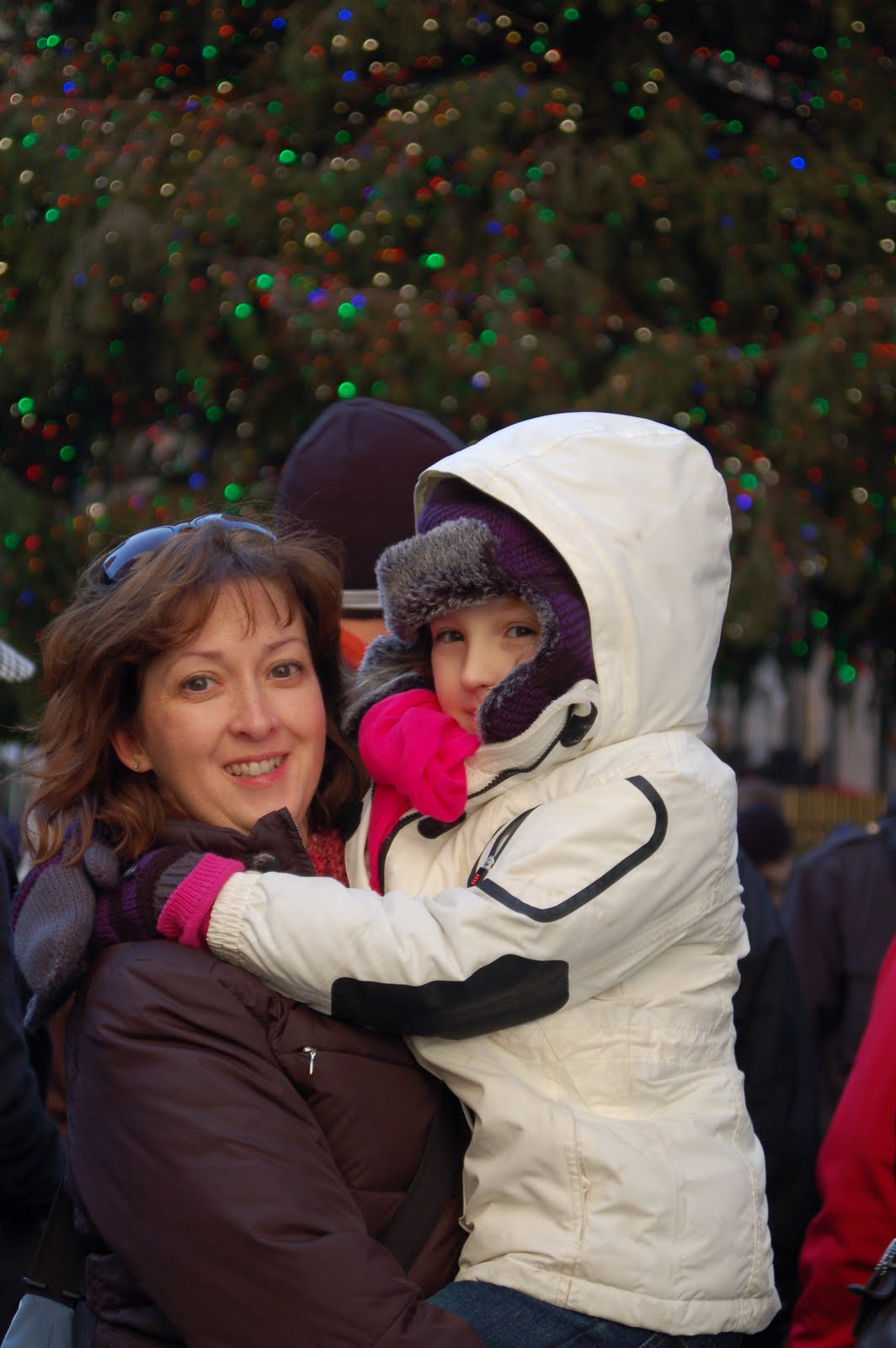 Stacey and Sullivan in front of the Rockefeller Center tree. (I did a little photoshop magic on this picture. The original image is below and you can see I \”erased\” some people in the background π