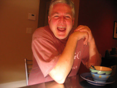 And this is a picture Quinn took that I thought was quite clever. The flash on my small digital camera often washes out the face. Quinn put his fingers over the flash to give it this orange-y glow.