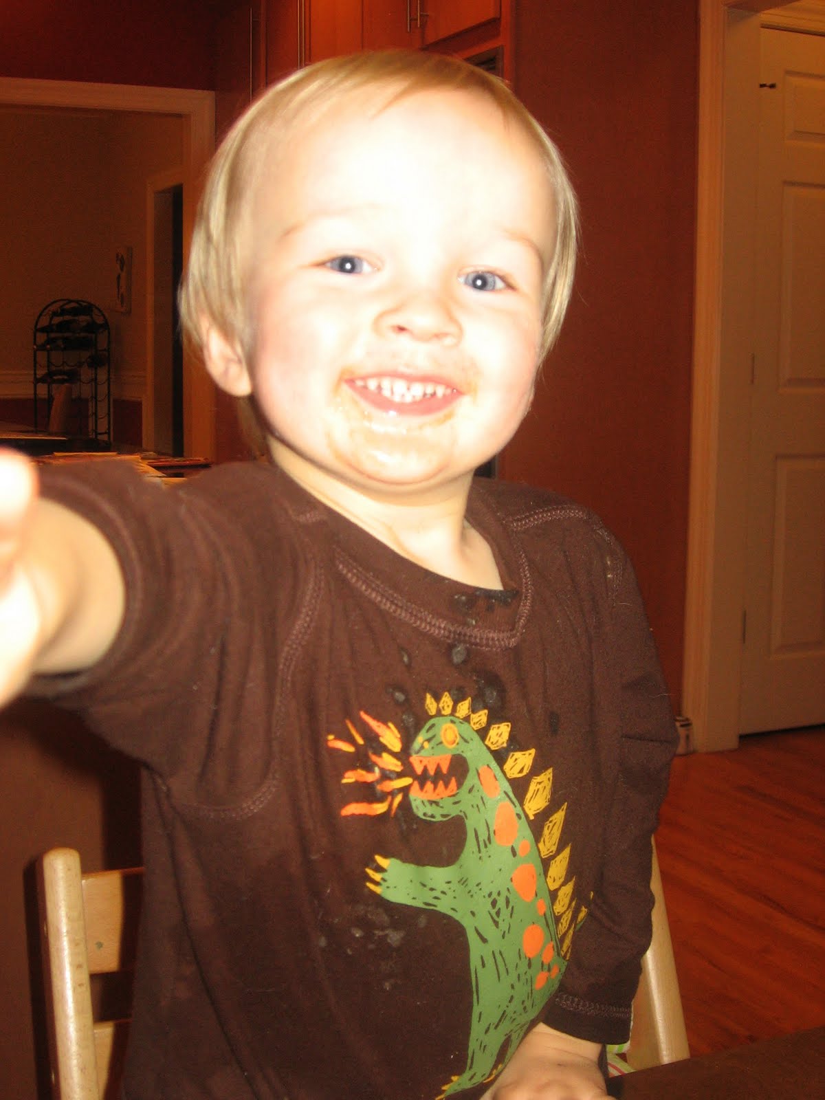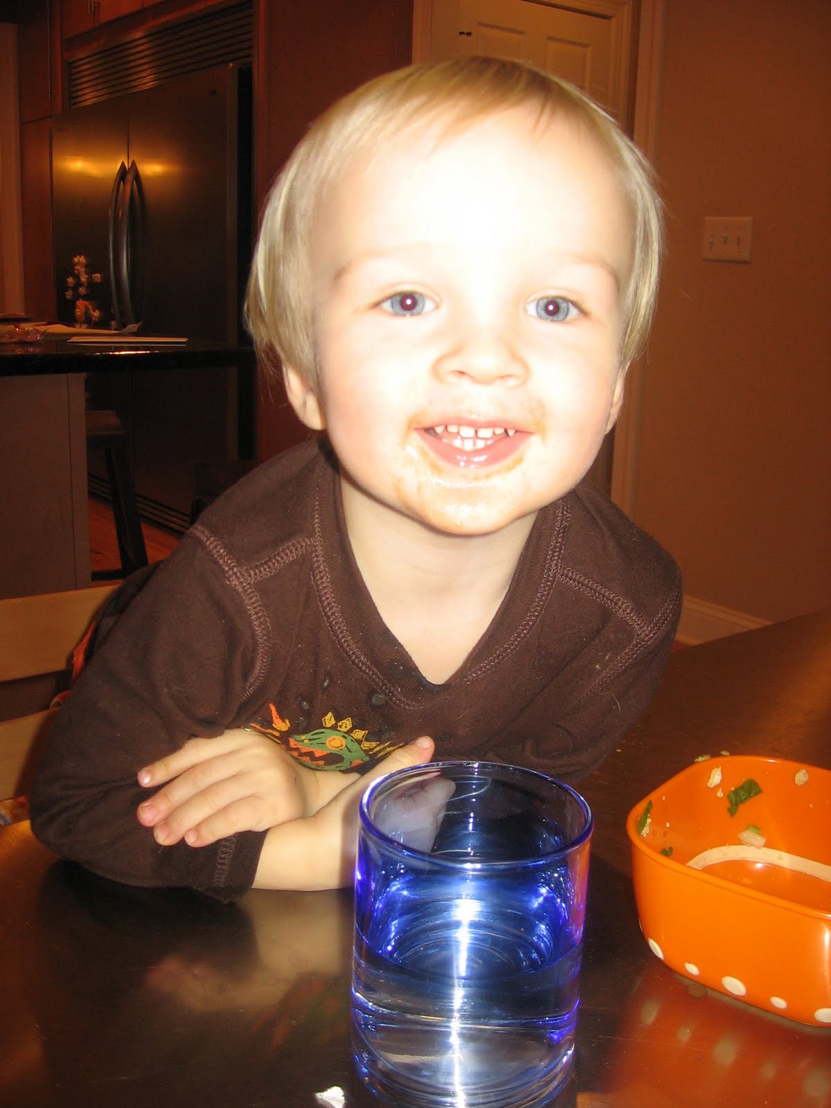 Here\’s our boy after slopping up some noodles.