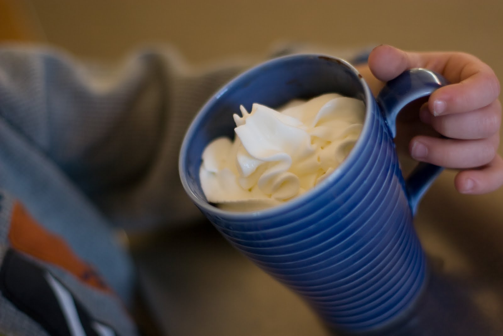 Yes, Hot Chocolate with lots of whipped cream. And guess who helped make it?