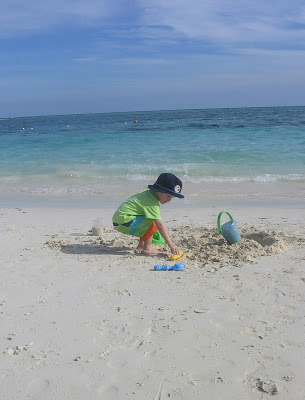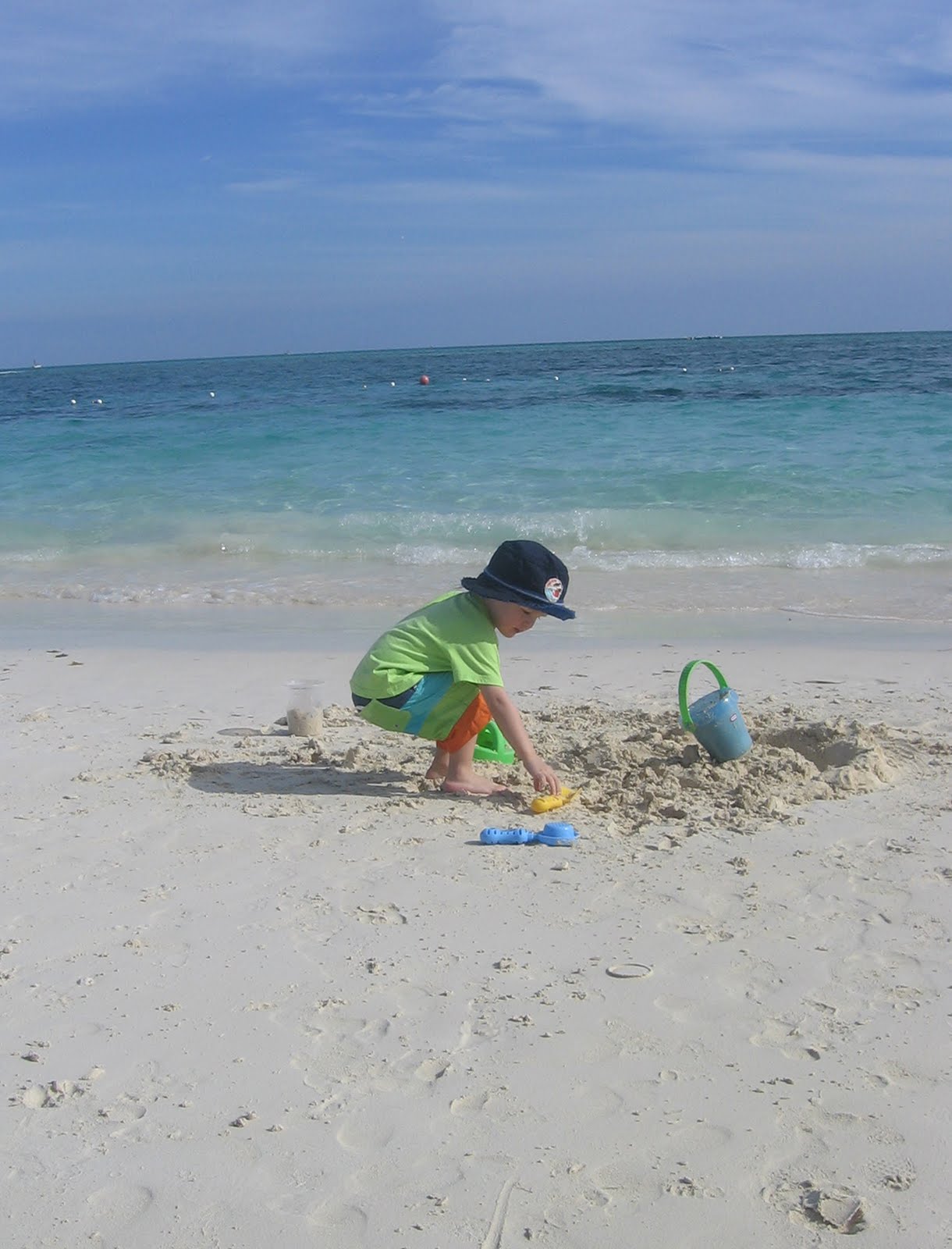 We made it! We hit the beach around 3 pm and enjoyed the last bits of sun…and a Goombay Smash (rum drink). Quinn got right down to business. I love the colors of the ocean!
