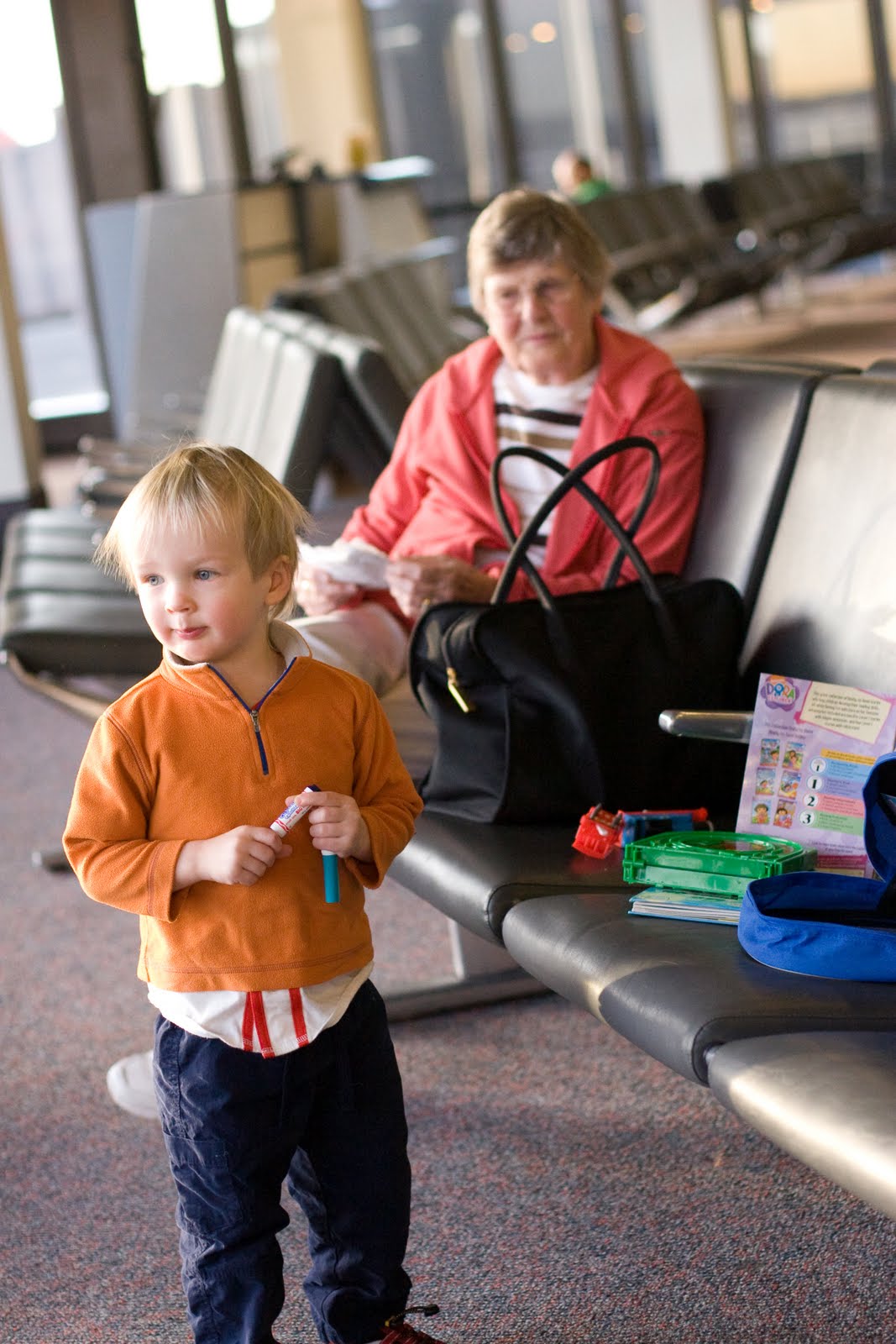Quinn was a really great traveler all the way there. Here we are in the Charlotte airport waiting for our flight to Freeport.