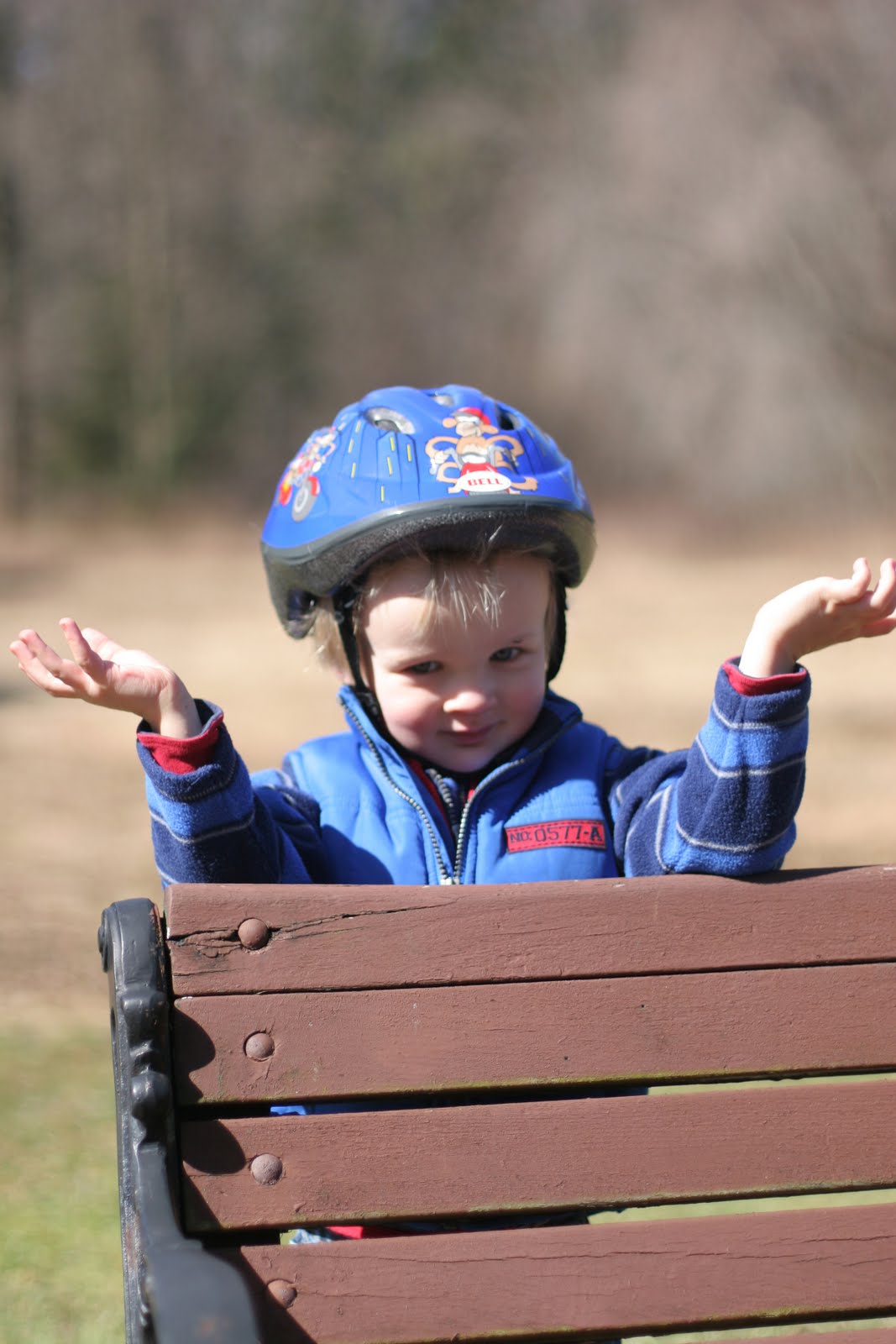I don\’t know! (Actually, this was a game of peek-a-boo behind the bench.)