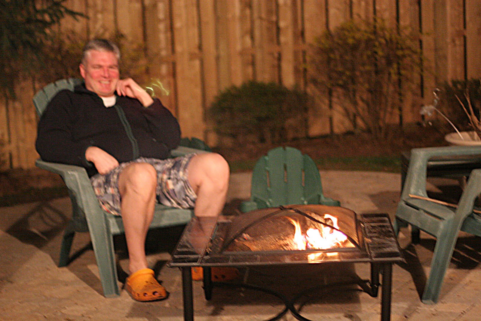 Why is it that boys, young and old, are fascinated with fire? I know my two guys love fire! Last night we broke out the fire pit that we got for Christmas. While Don got the fire going, I ran off to get \’smore fixings 🙂