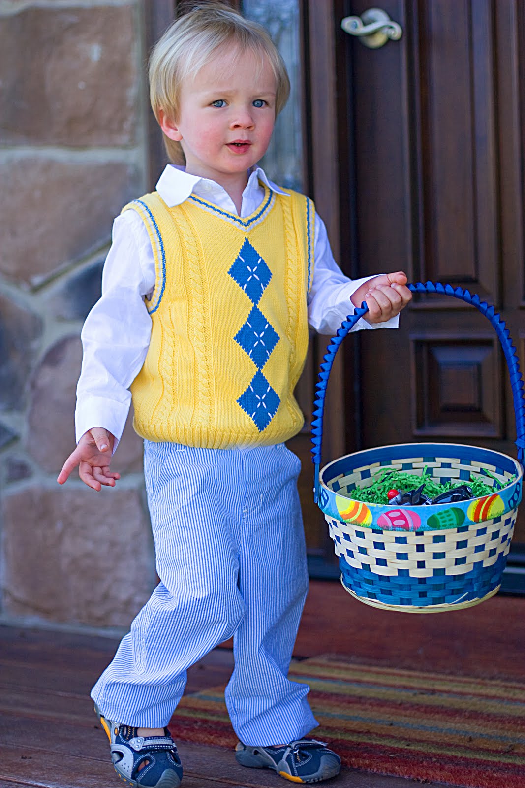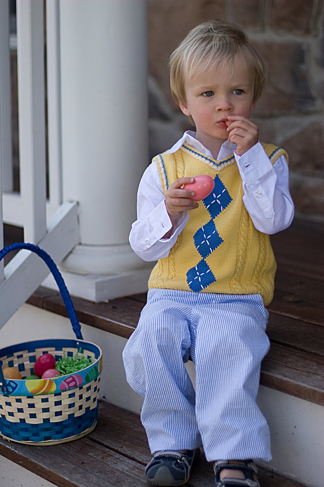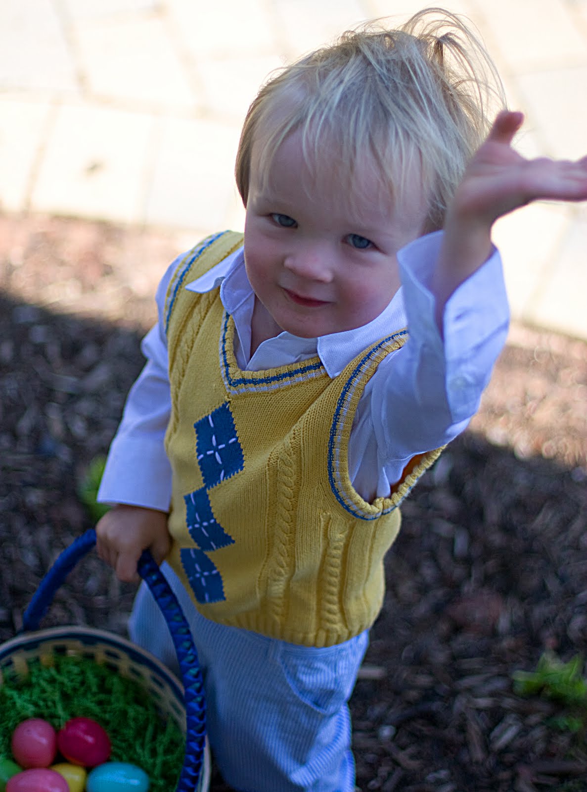And look at this little cup of sunshine! Wow, he\’s cute π Quinn got in his cute little easter \”monkey suit\” to go hunting for easter eggs and other goodies.