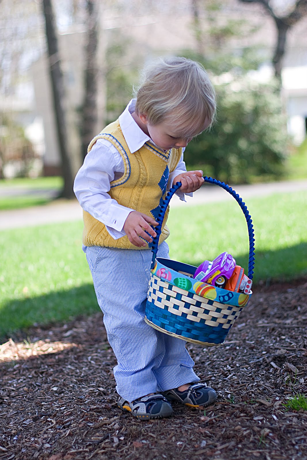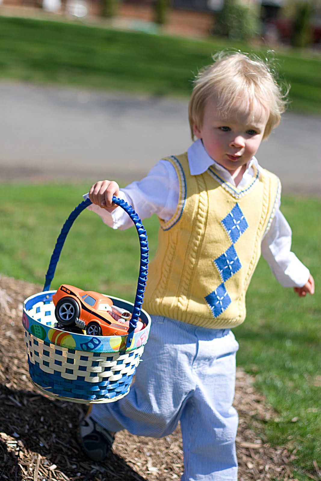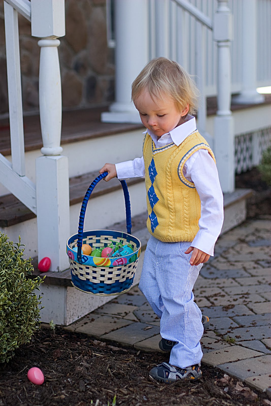 And look at this little cup of sunshine! Wow, he\’s cute π Quinn got in his cute little easter \”monkey suit\” to go hunting for easter eggs and other goodies.