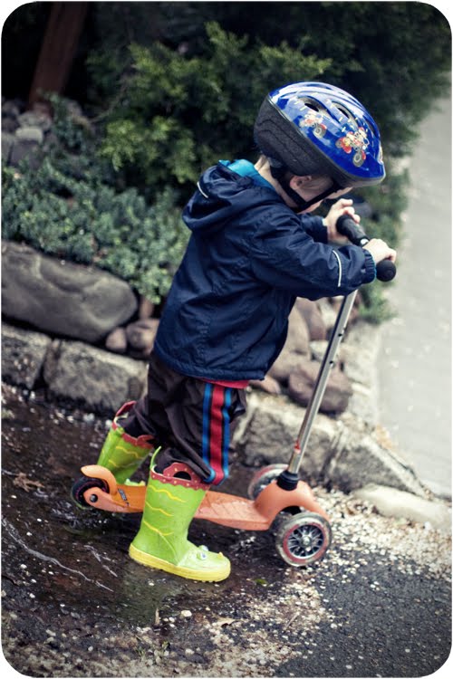 Did I mention that he also likes to pull up his hood when it\’s sprinkling? Makes sense to me π