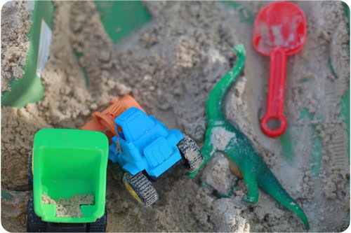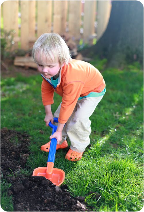 Dig some dirt! Whoops! That happens to be the area where Don prepped the yard and put down grass seed.