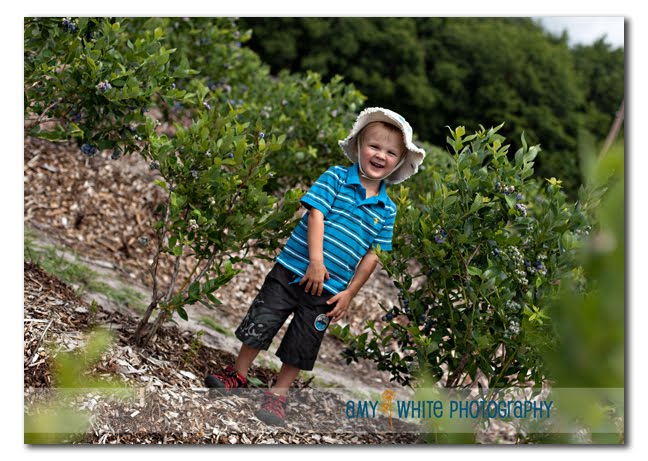 After being away from home for two weeks, Quinn and I hung around the house for most of the week enjoying being home. Today we decided to venture out and go blueberry picking with my friend Alison and her family. You probably remember her adorable son, Fraser, from this post. Fraser and Quinn have become good buddies and have great fun playing together. Alison also brought along her husband Damani and 3 month old baby girl Jasmine. The blueberry farm was about an hours drive, but we enjoyed a beautiful 75 degree day and lots of organic blueberries just waiting to be picked.