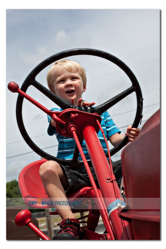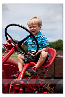 Aha! What boy can resist riding on a big red tractor?