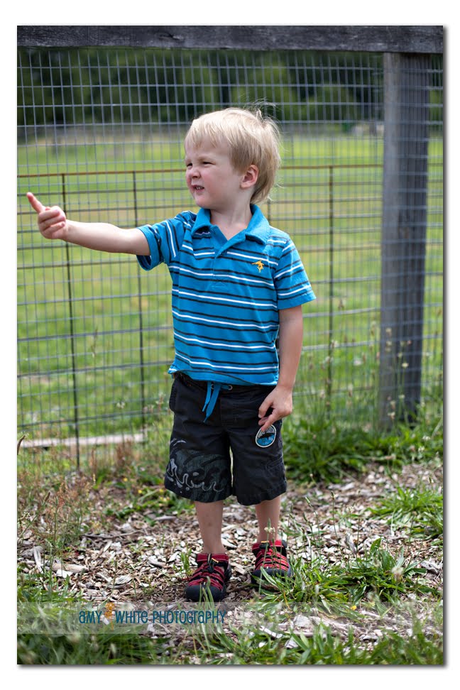 The farm has a small area with goats, sheep, and pea hens. We went to check them out, but Quinn wanted to go \”over there\”. I wonder what he\’s pointing to?