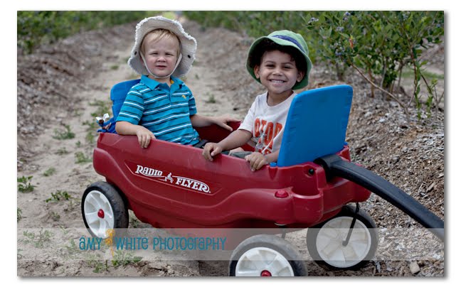 Both Quinn and Fraser were getting pretty bored with the blueberry picking so I gave them a ride around the farm in the wagon. Cutie pies!!