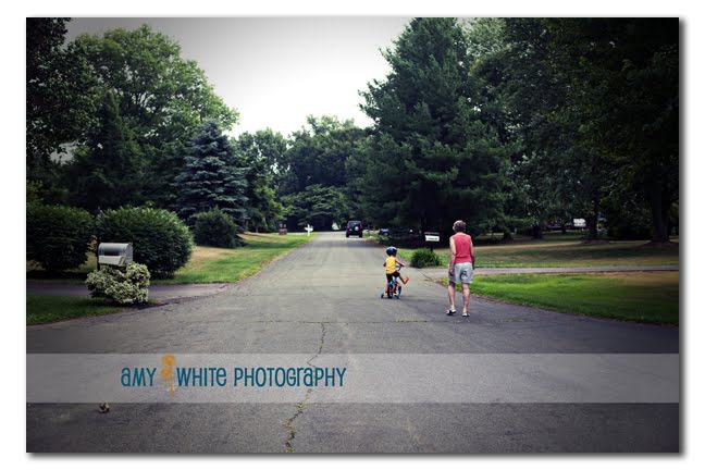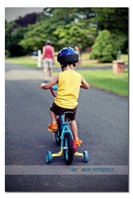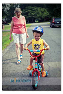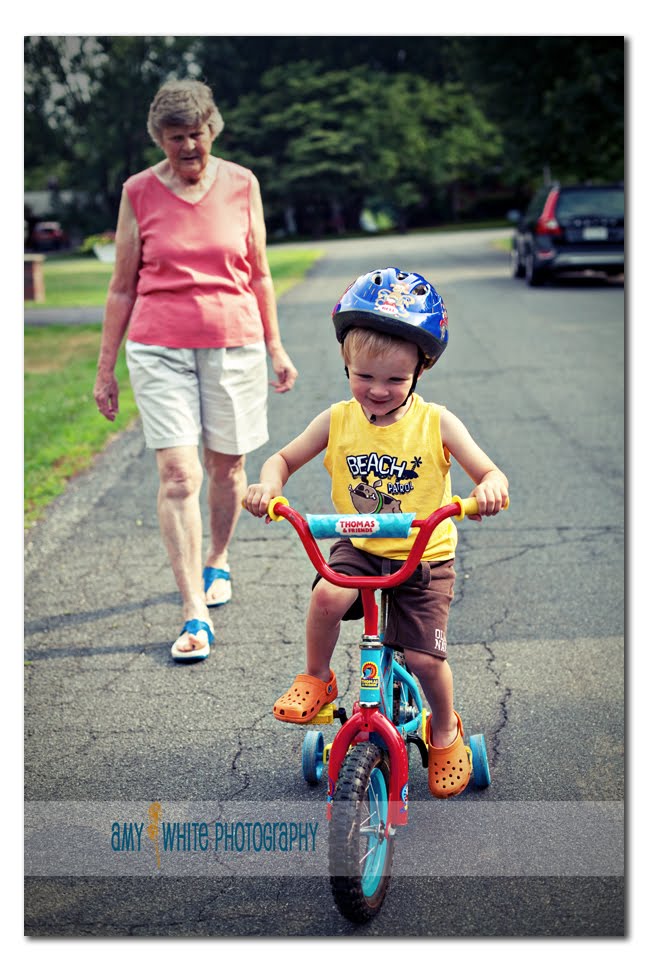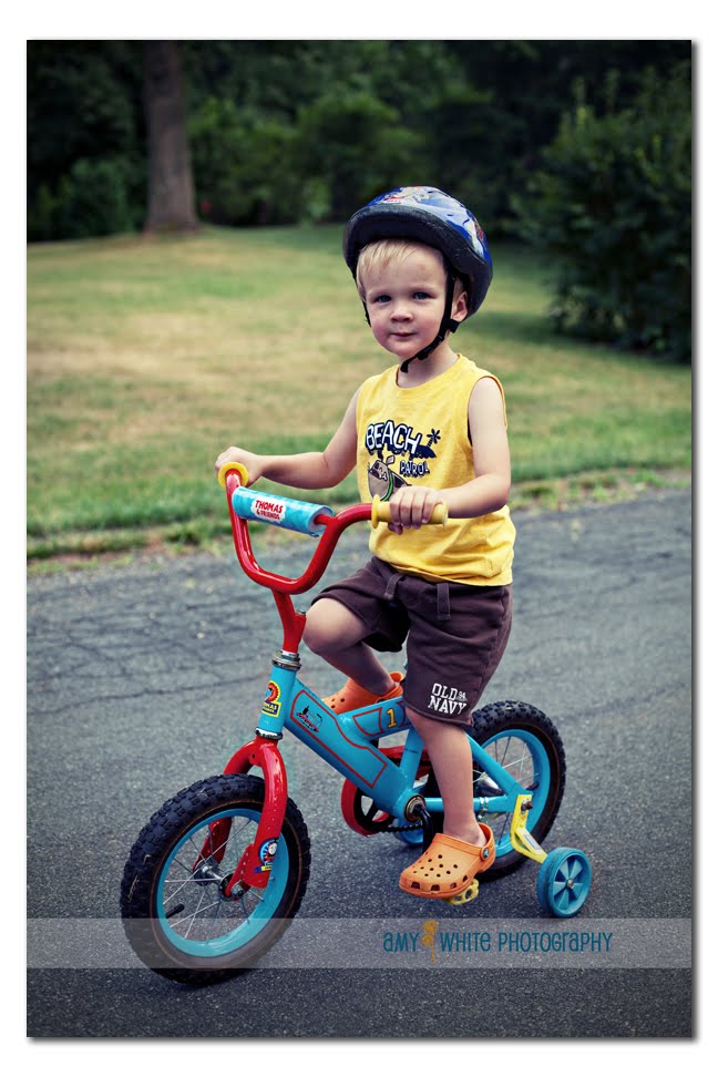 Mom found a second hand Thomas the Train bike with training wheels for Quinn. Of course it was the first thing Quinn noticed when we walked in to the garage. Generally if he sees a bike he will want to get on it and this time was no exception.