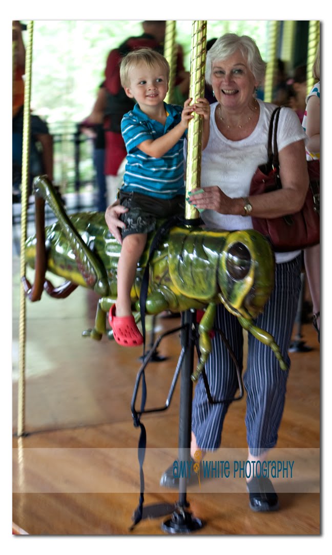 After lunch, Mae took Quinn for a ride on the Bug Carousel. They were lucky to get Quinn\’s choice in bugs — the grasshopper! I think they are having a good time. Quinn would have liked to ride this carousel over and over and over…