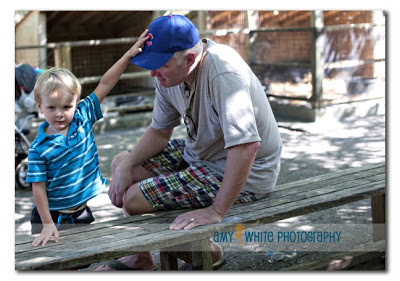 Then it was on to the Children\’s Zoo. There is lots of kid friendly stuff for the kids to jump on, touch, tunnel through, etc. Here\’s Don and Quinn at the petting zoo. In this picture Quinn is asking for something. He thinks it will help his cause if he rubs your head while asking 🙂