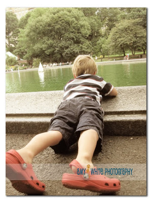 We found a pond where people sail little sail boats and also have motorized \”speed\” boats. We saw one guy put a \”rescue\” boat in the water to fetch a boat that must have died. Here\’s Quinn checking out the action.