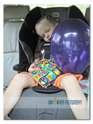 He had a big snack and drink on the way home while he played with his balloon from the shoe purchase. He also managed to sneak in a quick catnap.
