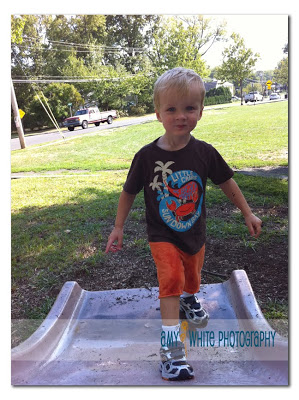 Today I seemed to be reminded at every turn how much Quinn is growing and developing. At the beginning of the summer, he needed alot of help getting up this spiral ladder. Now he climbs up it on his own and then slides right over to the platform. Our big boy!