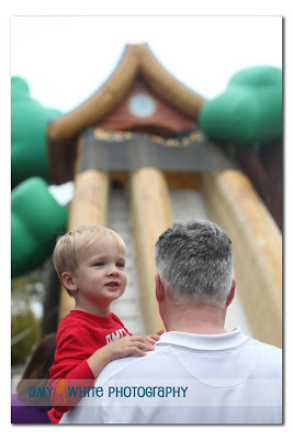 Quinn caught a glimpse of this very tall slide and decided he wanted to take a ride. Don and Quinn got in line while I scurried off to get tickets. Quinn is proudly displaying his 3 tickets.