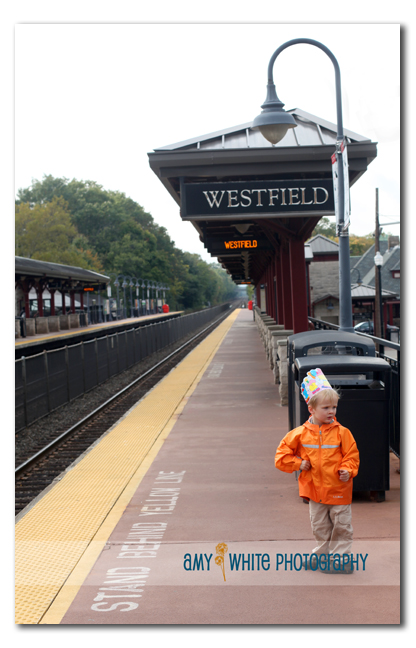 To make our day even better, the fire station is right next to the train station. We walked up and down the platform a couple of times waiting in vain for a train to come whistling by the station. Notice the birthday crown.