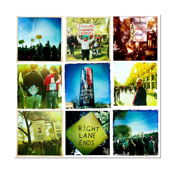 When we hit the streets in DC we were immediately hit by the large number of people who turned out for the rally. I think the final estimate was around 250,000! We weren\’t able to get very close to the stage and had a hard time hearing (other than Ozzy 🙂 but we were happy to be part of the movement. There were so many clever and funny signs. Our favorite was definitely \”Every time Sarah Palin tweets, God kills a kitten\”.