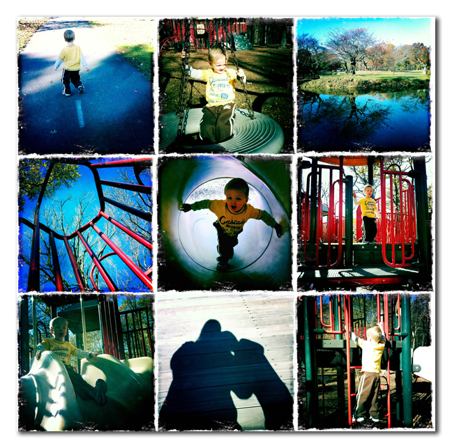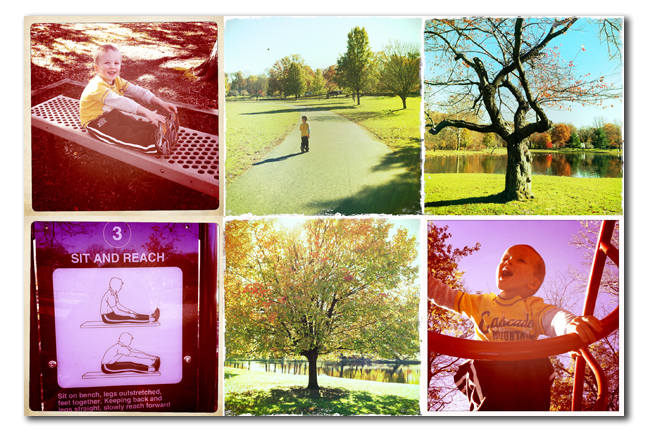 Quinn and I have had a terrific day. It started out with both of us sleeping in until 9:30 am. What a treat! We enjoyed a nice lazy breakfast and then headed out for a Starubuck\’s. Yes, it already sounds pretty good and we\’re not at the good part yet. Quinn got a haircut and then we headed to one of our favorite local parks, Nomahagen. The park is especially beautiful this time of year when the leaves are changing. There are two playgrounds tucked in to the edge of the woods. Quinn had a great time and didn\’t want to leave after almost 3 hours.