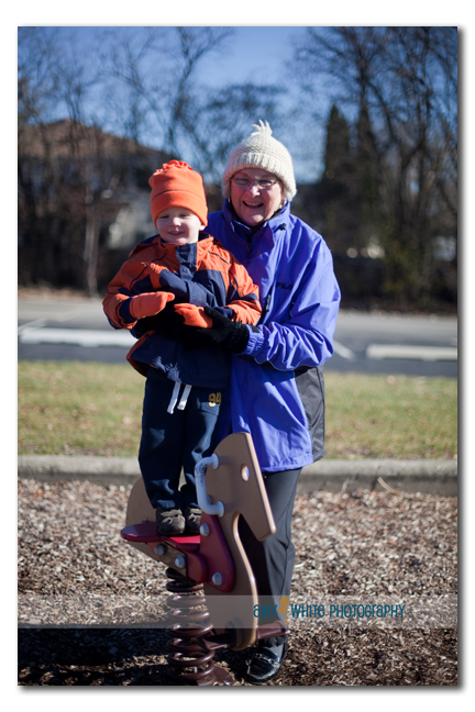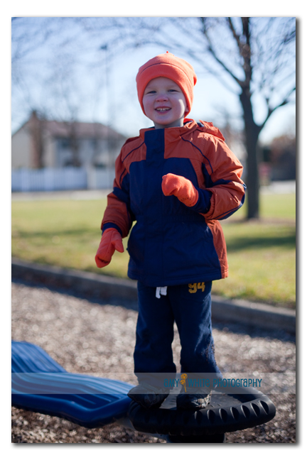 And then we got a real taste of Chicago winter. It was about 24 degrees this morning when we headed out to a playground near Mae\’s house. The adults were freezing but Quinn was having a great time. We might just like the color orange in our family 🙂