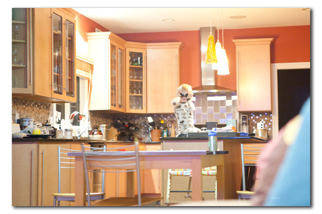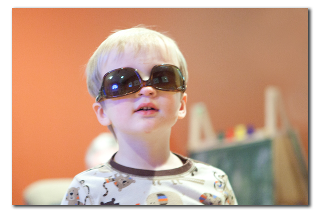 Last night we were watching TV and Quinn climbed on to the kitchen island and put on my sunglasses. Pretty harmless because we caught him early.