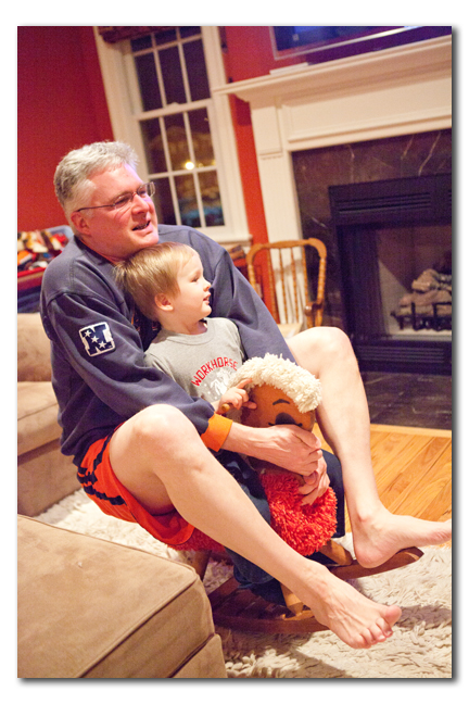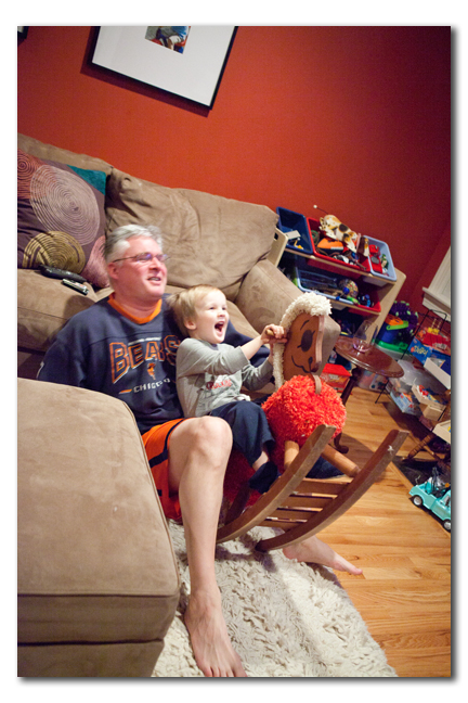 And it wouldn\’t be complete without a topple off the horse. I don\’t know if you can see it in the picture below, but Quinn has a huge hole in his shirt where he took his scissors to his shirt. Shenanigans.