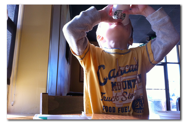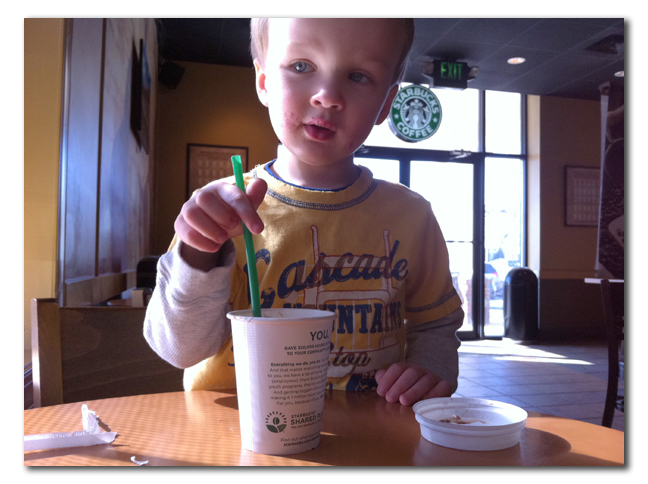 Quinn has a valentine\’s party at school on Tuesday and his teacher Miss Bunny asked that we bring in valentines cards for all his little friends. We ran by the school in the afternoon to drop them off and then headed to Starbucks for some coffee and hot chocolate. Quinn loves his hot chocolate! For some reason it felt like we were playing hookie 🙂