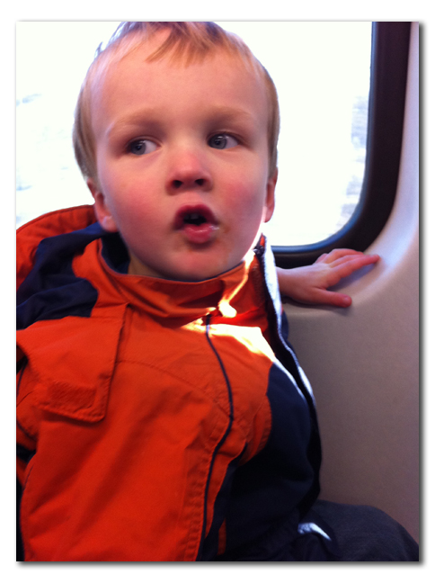 We sat on the sidewalk for about 20 minutes until he started feeling better and then headed back to the train station where we sat and waited for the train. It was obvious he was really hurting because he had no interest in anything except putting his head on my shoulder. We got on the train home and he fell asleep in my lap.