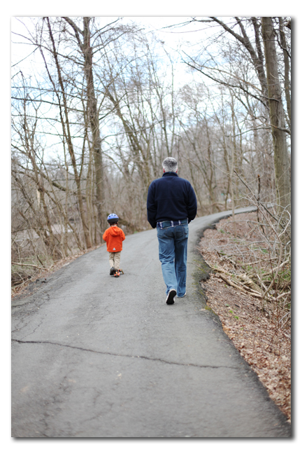 Quinn made it about halfway before he needed a ride on Don\’s shoulders. After a nice break, he scootered to the finish.