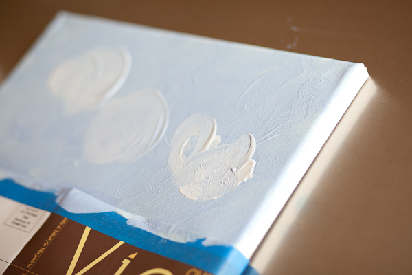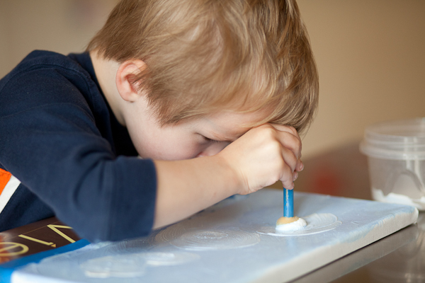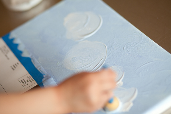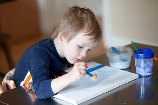 I mixed up a couple of different colors for Quinn and he went to work painting the sky on a piece of canvas.