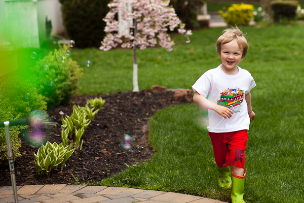 We are getting a nice taste of warm weather and Quinn and I are making the most of it. We headed outside today to test his new bubble blower.