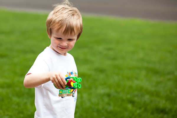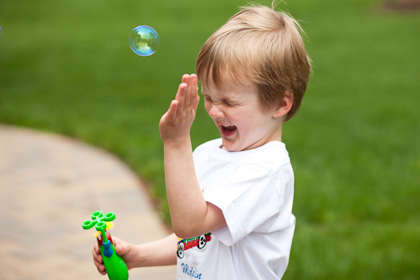 The next 5 pictures crack me up. Let\’s just say that Quinn might have worn out the battery on the bubble blower yesterday so the little fan wasn\’t strong enough to blow bubbles. His expression goes from pretty happy to….
