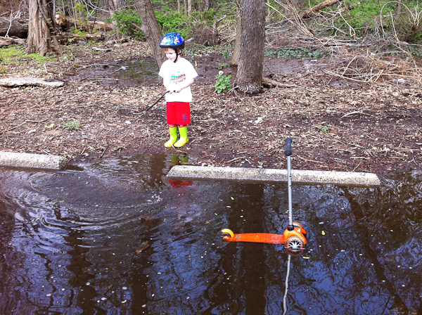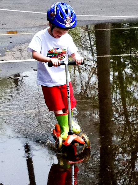 Quinn and I had some fun on Monday scootering around the neighborhood and splashing in puddles.