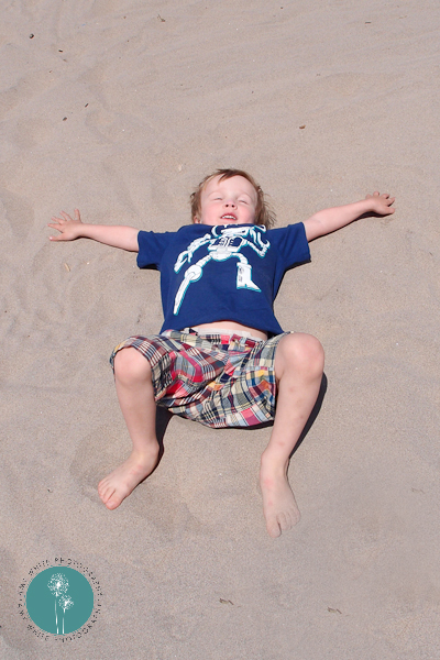 There were lots of people laying out in the sun and Quinn thought he should do the same. He is a funny boy!!