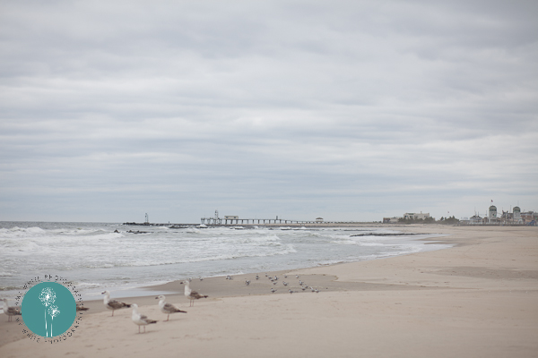 A look down the coast. Seagulls were the only brave souls to hit the beach besides us.