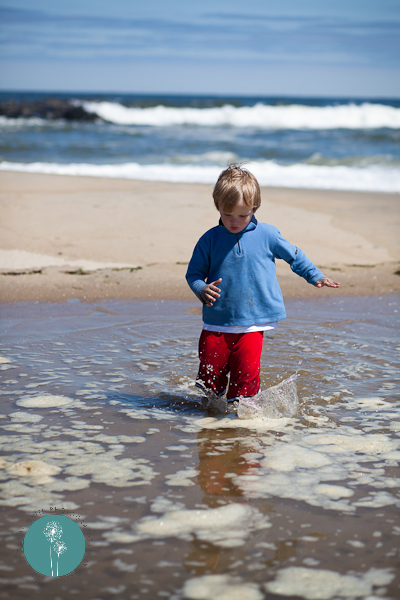 And then everything started turning our way. The skies cleared up and the sun came out. Then the tide started to rise and created a wading pool for Quinn. We moved our stuff down near the water and enjoyed the rest of the sunny, warm afternoon.