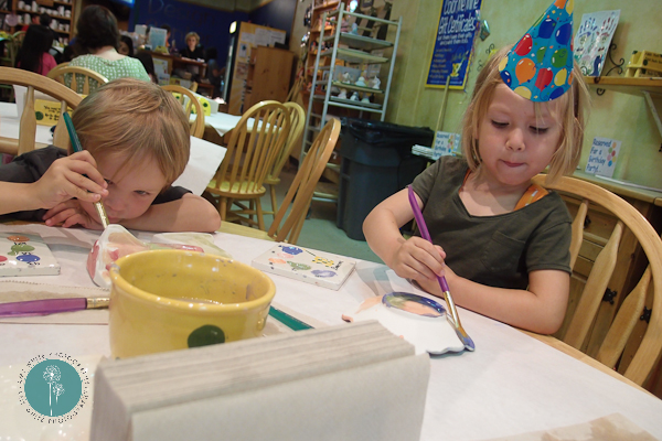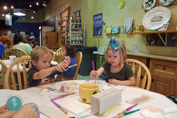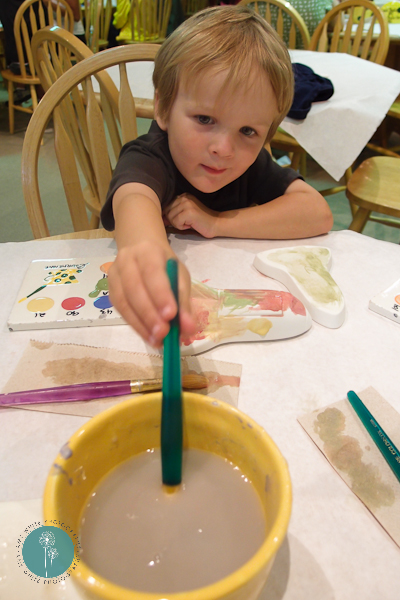 On Saturday we attended a birthday party for a cute little 4 year old girl, Annalie. We walked in and Annalie very joyfully said \”I\’m Four!\” and Quinn rebutted with a firm \”I\’m Three!\”. The party was at a paint your own pottery place. Quinn picked out a spaceship to paint.