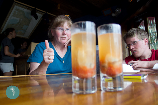 (oyster shooters for Pam and I; 3 rounds to be exact)