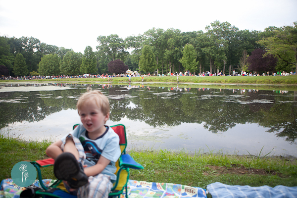 On the way home from the pool we went for a drive to encourage Quinn to take an afternoon nap. Success! While he was sleeping we ran by the park in Cranford where we planned to see the fireworks. Don jumped out and set up our area with beach chairs and a blanket.