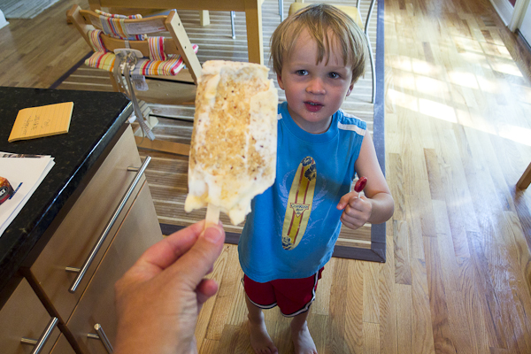 I guess this is a sugar blog post. Today Quinn asked for a lollipop and I obliged. I remembered I had a melted and refrozen ice cream bar in the freezer and decided to oblige myself. As soon I opened it up Quinn piped up and said \”Let\’s switch!\”. We shared 🙂