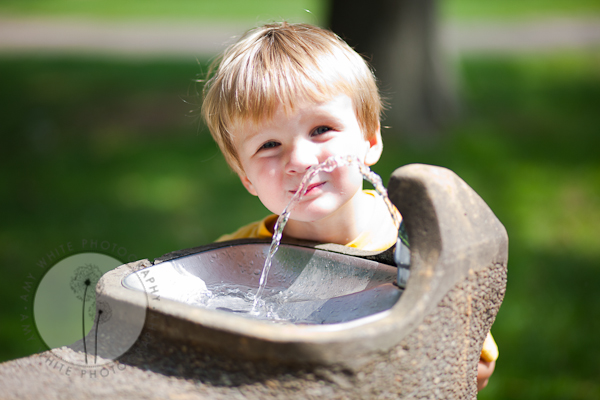 On Friday we had another marathon play day, but this time at Trailside Nature Center. They have a great outdoor playground and it was packed with kids of all ages. Quinn has started to enjoy playing with other kids much more and is always excited to see a playground packed with kids. And of course he can\’t pass a water fountain without trying it out.