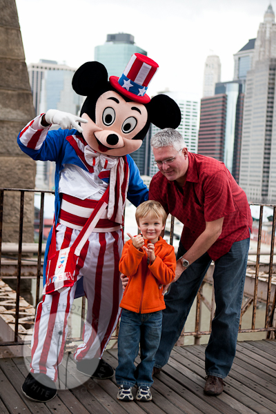 Who needs to go to Disney when we can see Mickey Mouse on the Brooklyn Bridge. Quinn just reminded me that Papa put a ticket in Mickey\’s purse after the picture. The ticket was cash as Mickey was working for tips.