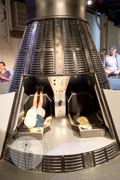 Someone totally butted in line for a ride in the escape capsule.