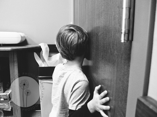 We were waiting to see Dr. Lois and Q was using his super skills to listen through the door in to his ears.