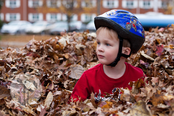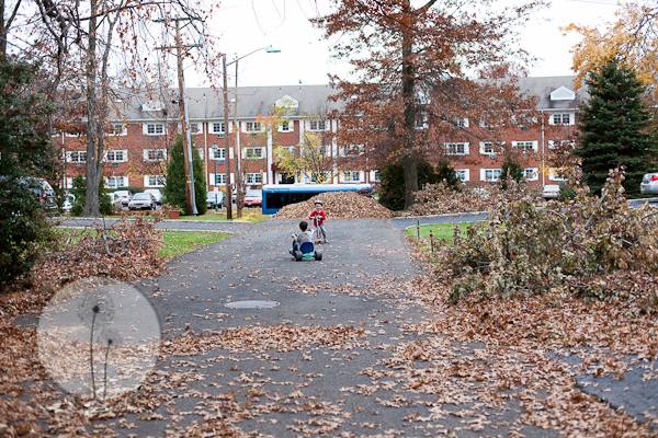 We are having some unseasonably warm weather so we all went outside to enjoy before it started raining. Our street is a mess with leaves and branches waiting for the town to come by and take them away. But Quinn and Lucas had a great time racing down the driveway and crashing in to the giant leaf pile at the end of the street.