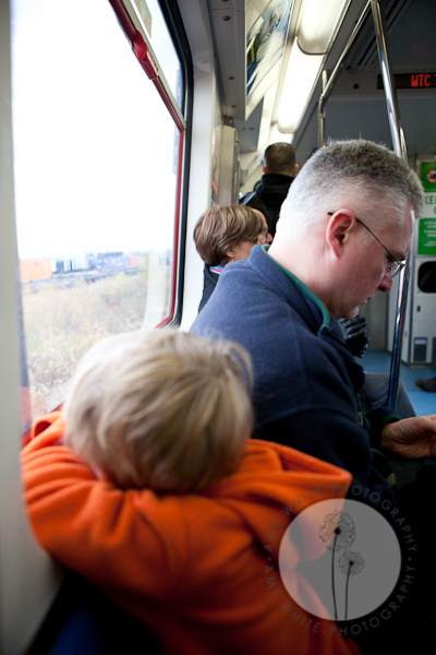 The motion and gentle sounds of the train put one little guy right to sleep.