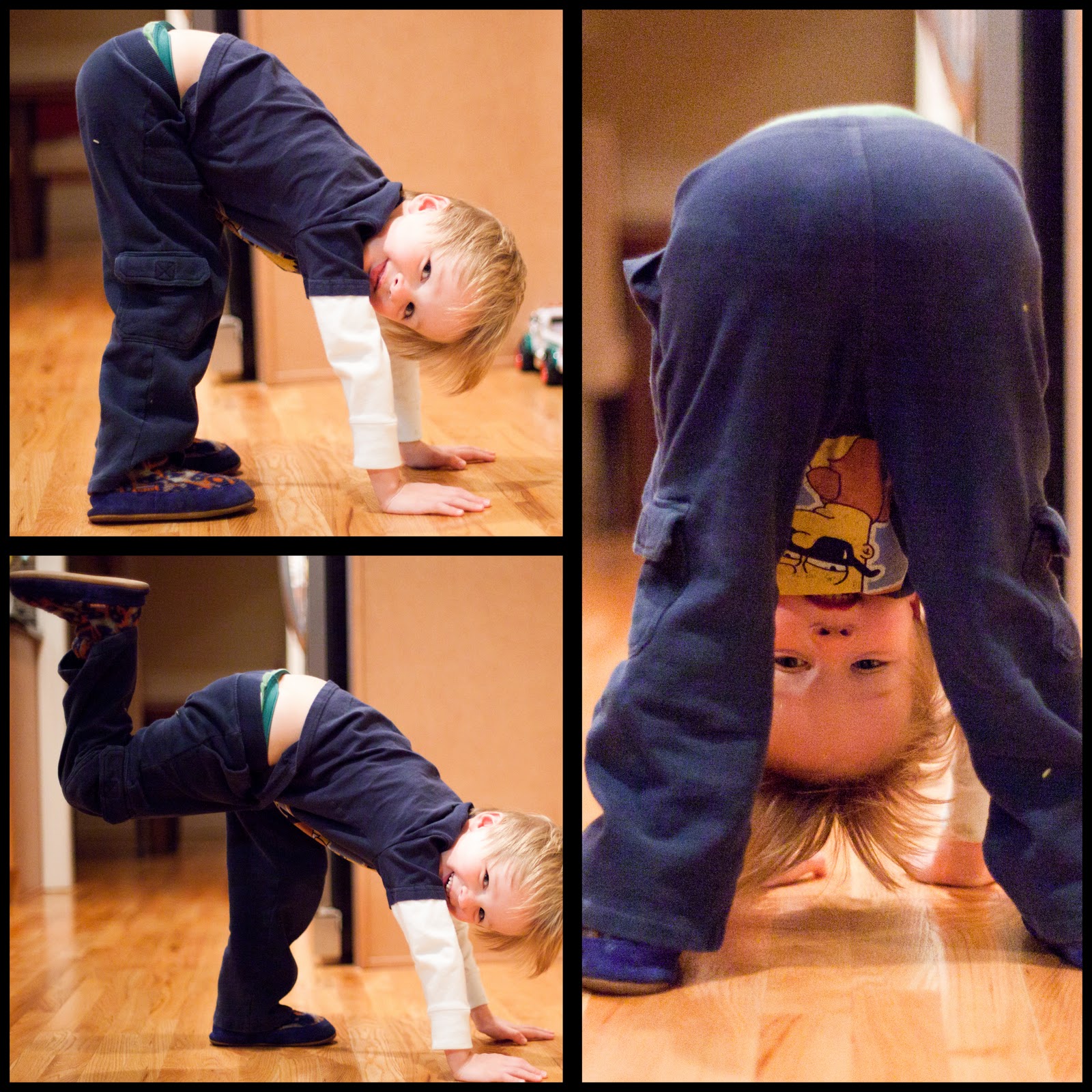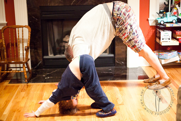 Don shook things up at the gym on Tuesday and took a Power Yoga class. He practiced some of his poses with Quinn last night.